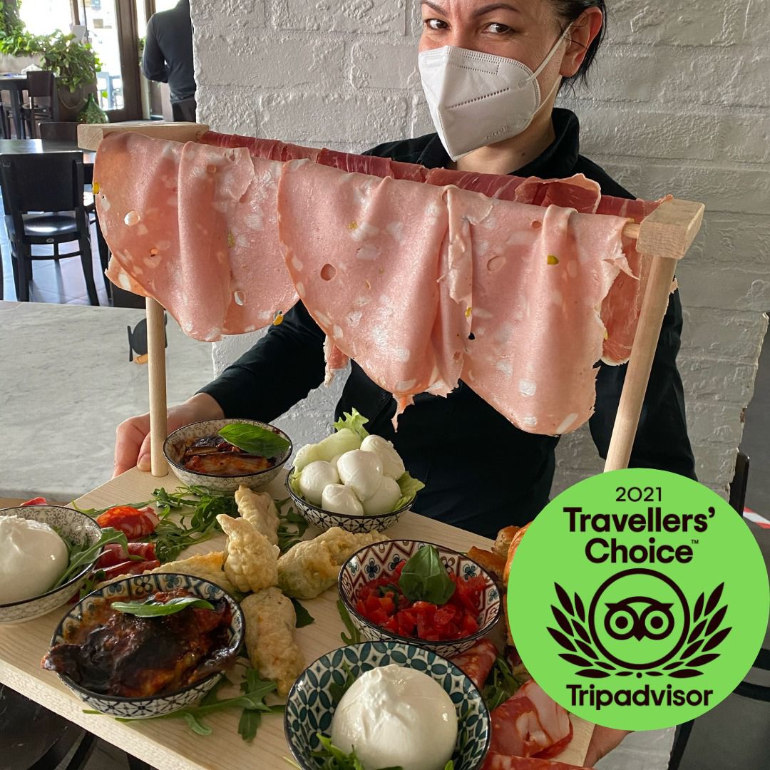 Mozzarella, crema di pistacchio di Bronte, mortadella IGP, granella di pistacchio di Bronte